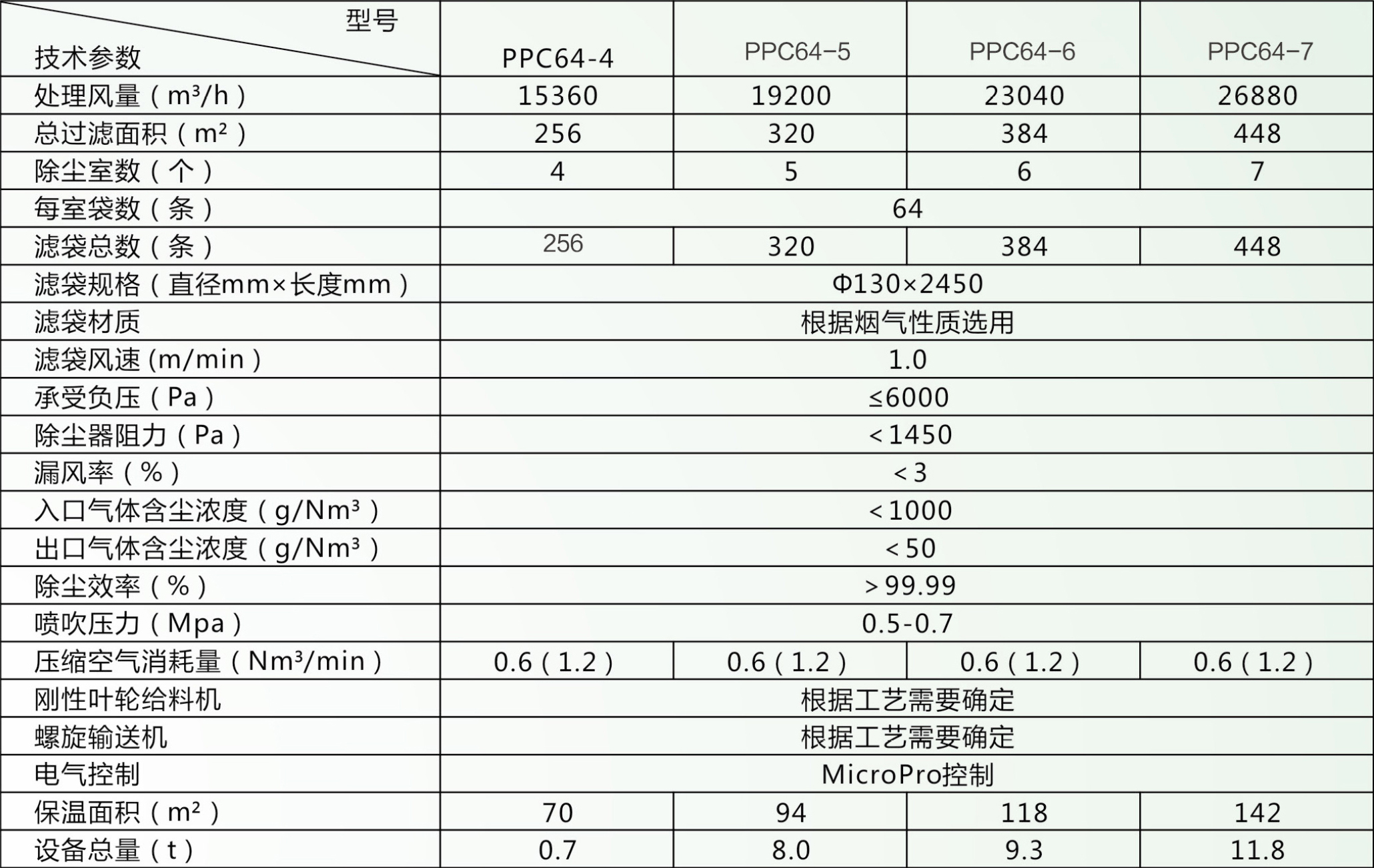 當(dāng)此動(dòng)作完成后(約10-15秒),出口管上的提升閥重新打開(kāi),使該室新進(jìn)入過(guò)濾狀態(tài)。其它箱室同樣按上述動(dòng)作逐一進(jìn)行直至全部清灰完畢。各箱室的脈沖噴吹寬度和清灰周期同專用的清灰程序控制器設(shè)定。