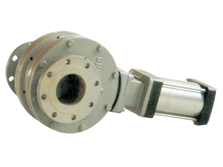 氣動出料閥設置與發(fā)送器物料出口處,發(fā)送器輸送時,該閥打開發(fā)送器輸送結(jié)束時,詼閥關閉。工作時,氣缸通過手帶動閥芯做回轉(zhuǎn)運動,從而打開或關閉閥門。