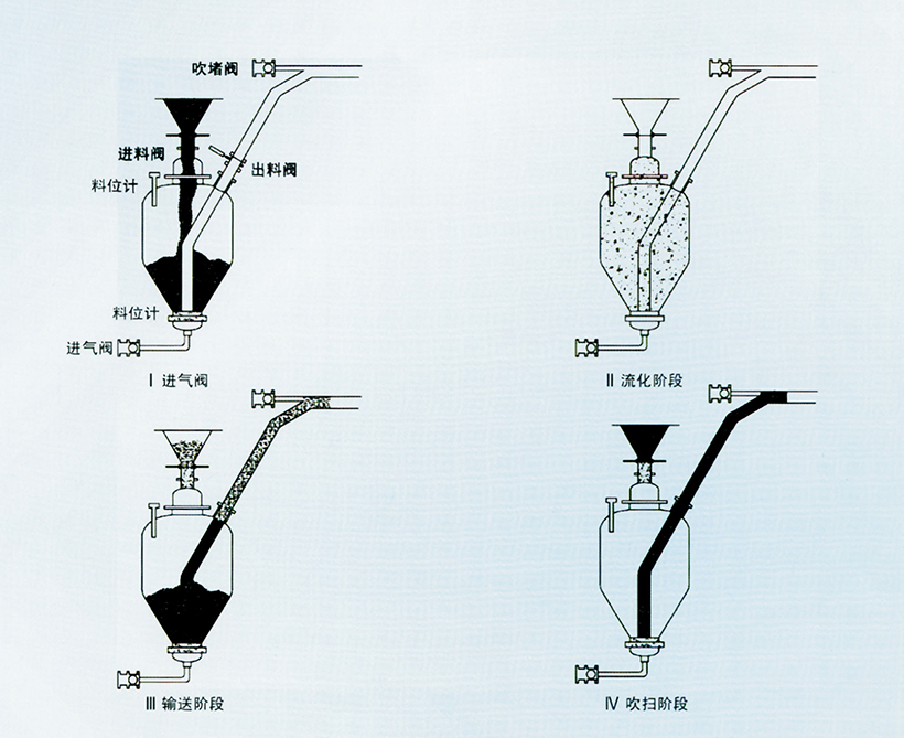 LD型正壓濃相發(fā)送器工作過程分為四個階段。